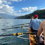 Am Samstag früh ging es dann nach Seeboden zum Ruderclub Wiking-Spittal. Um 10 Uhr haben wir mit dem Doppel-Fünfer Gig abgelegt und bei leichtem Gegenwind, aber immer besser werdenem Wetter, Richtung Döbriach am anderen Ende des Sees gerudert. Nach eindreiviertel Stunden legten wir nach 13 Ruderkilometern beim Strandbad an. Nach einer Stärkung traten wir die Rückfahrt bei strahlendem Sonnenschein und Rückenwind an.