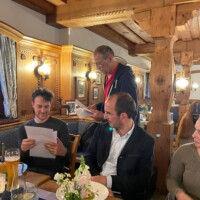 Wieder in trockenen Gewändern traf sich im Anschluss der gesamte Kurs (leider eine krankheitsbedingte Absage) beim Kaiserhof in Neualm, wo der Vorstand des RCS wartete. Hartmut verteilte die Kurszertifikate und wies auf die tollen Leistungen aller hin. Logisch, dass da der Vorstand den Wunsch hat, möglicht alle dieser Truppe als Mitglieder zu begrüßen. So ging zu später Stunde ein netter Abend und ein erfolgreicher Ruderkurs zu Ende.